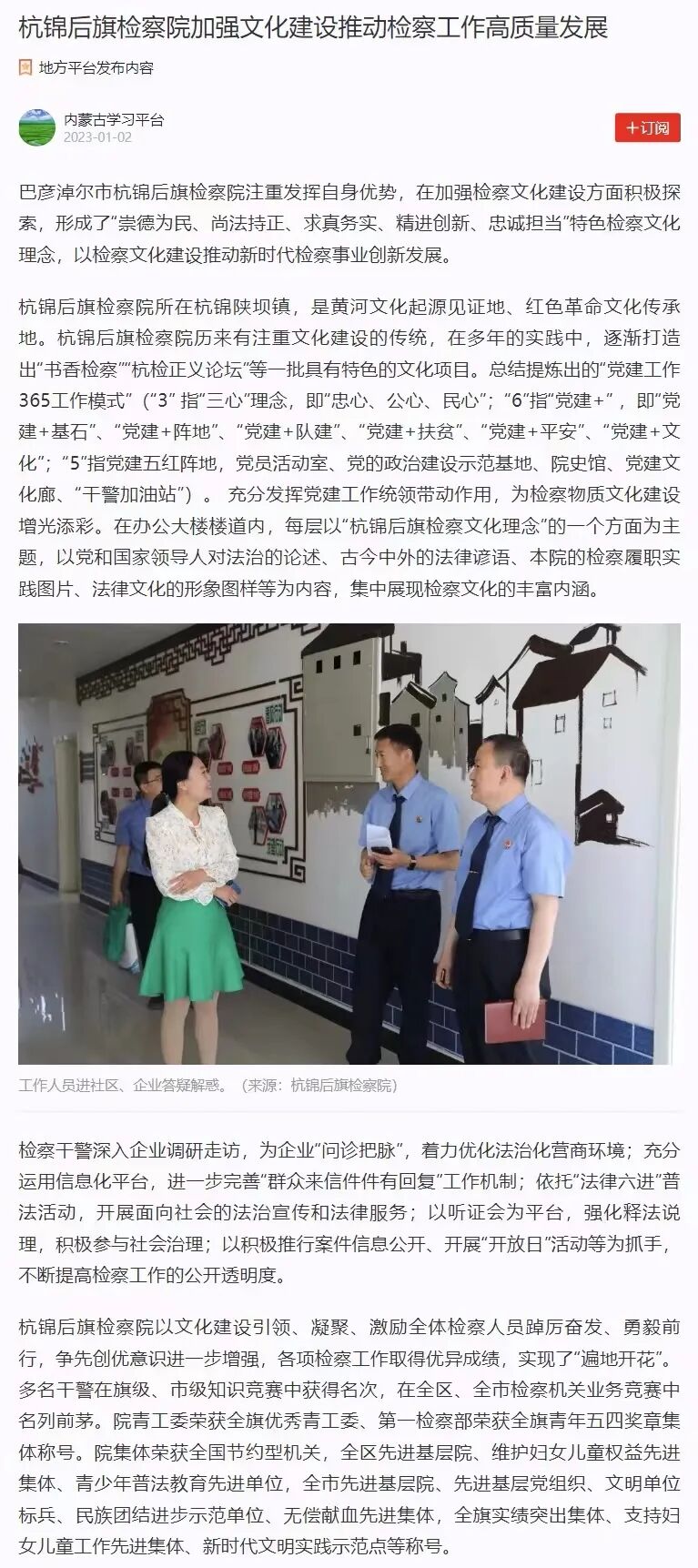 1月2日,学习强国平台刊发本院文化建设经验材料《365app下载手机版_365赢了不让提款_完美365体育ios下载检察院加强文化建设推动检察工作高质量发展》。