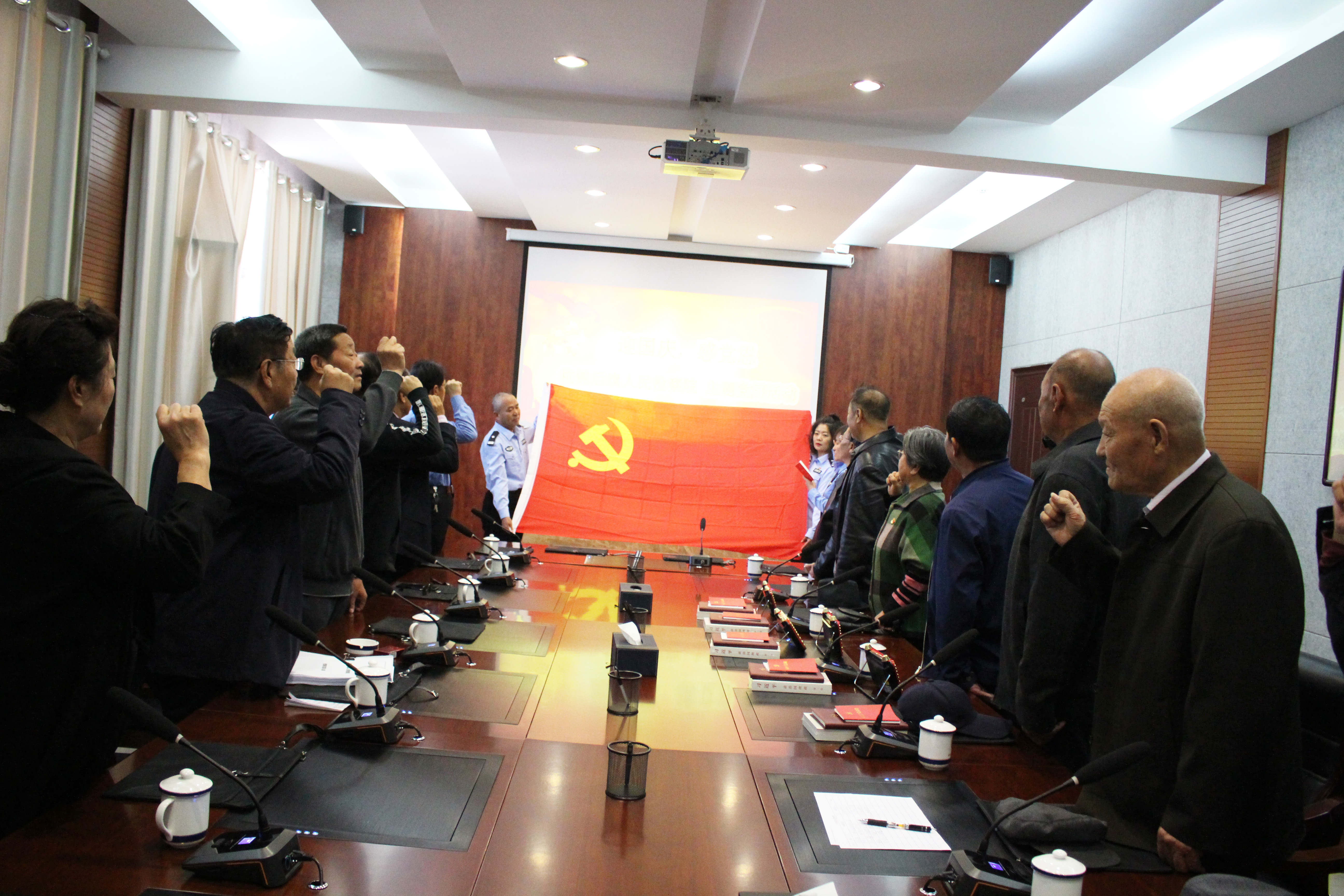 党支部组织委员聂艳带领老党员们面对党旗庄严宣誓,重温入党誓词。