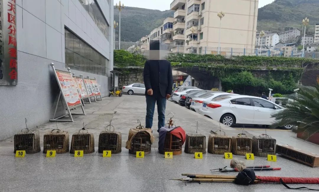 犯罪嫌疑人指认被查获的部分画眉鸟