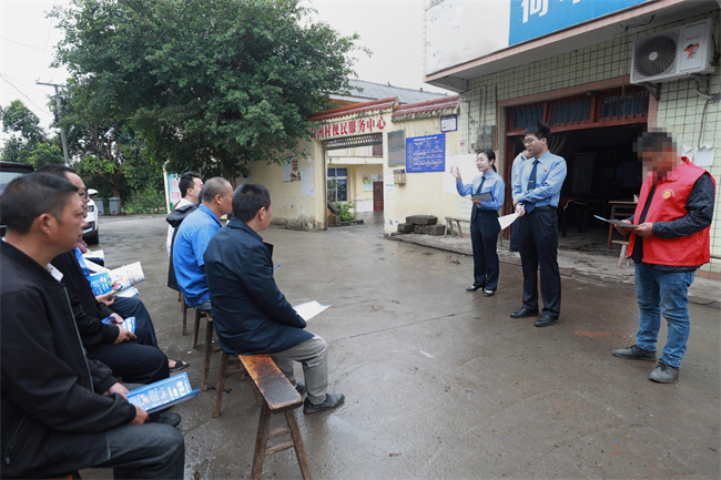 长江生态保护法治志愿者杨某(右一)在白沙镇苟洲村的院坝会上现身说法