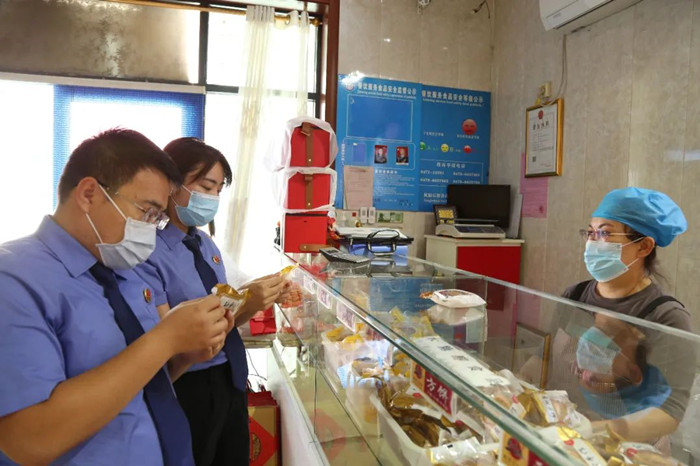 经走访发现,部分在售月饼外包装上未注明生产日期、成分配料标识不清或缺少法律规定的必须标明的食品信息;部分月饼作坊生产卫生条件不达标、预包装食品的外包装未标明或缺少法律规定的事项,生产过程中存在从业人员未佩戴口罩等生产环节监管上的漏洞,可能存在食品安全隐患。 对发现的问题,市场监督管理局已当场责令生产者或销售者立即整改,严格按照规定生产和销售,要强化责任意识,严把食品质量关。检察干警在活动中积极向月饼生产、销售商进行《食品安全法》普法宣传,提高其遵纪守法经营意识、食品安全意识。小饼如嚼月,中有酥与饴。月饼承载着人们对于中秋佳节的美好寓意,此次对中秋月饼市场进行节前监督检查,为确保节日期间食品安全,营造和谐放心的消费环境提供了法治保障。