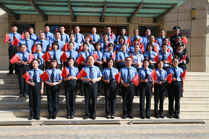 9月29日,全体干警身着检察制服,精神饱满,整齐肃立。伴随着雄壮激昂的《义勇军进行曲》奏响,鲜艳的五星红旗冉冉升起,迎风飘扬。全体干警向国旗行注目礼,怀着对祖国崇高敬意,用无比自豪的心情表达对伟大祖国的深情热爱和诚挚祝福。